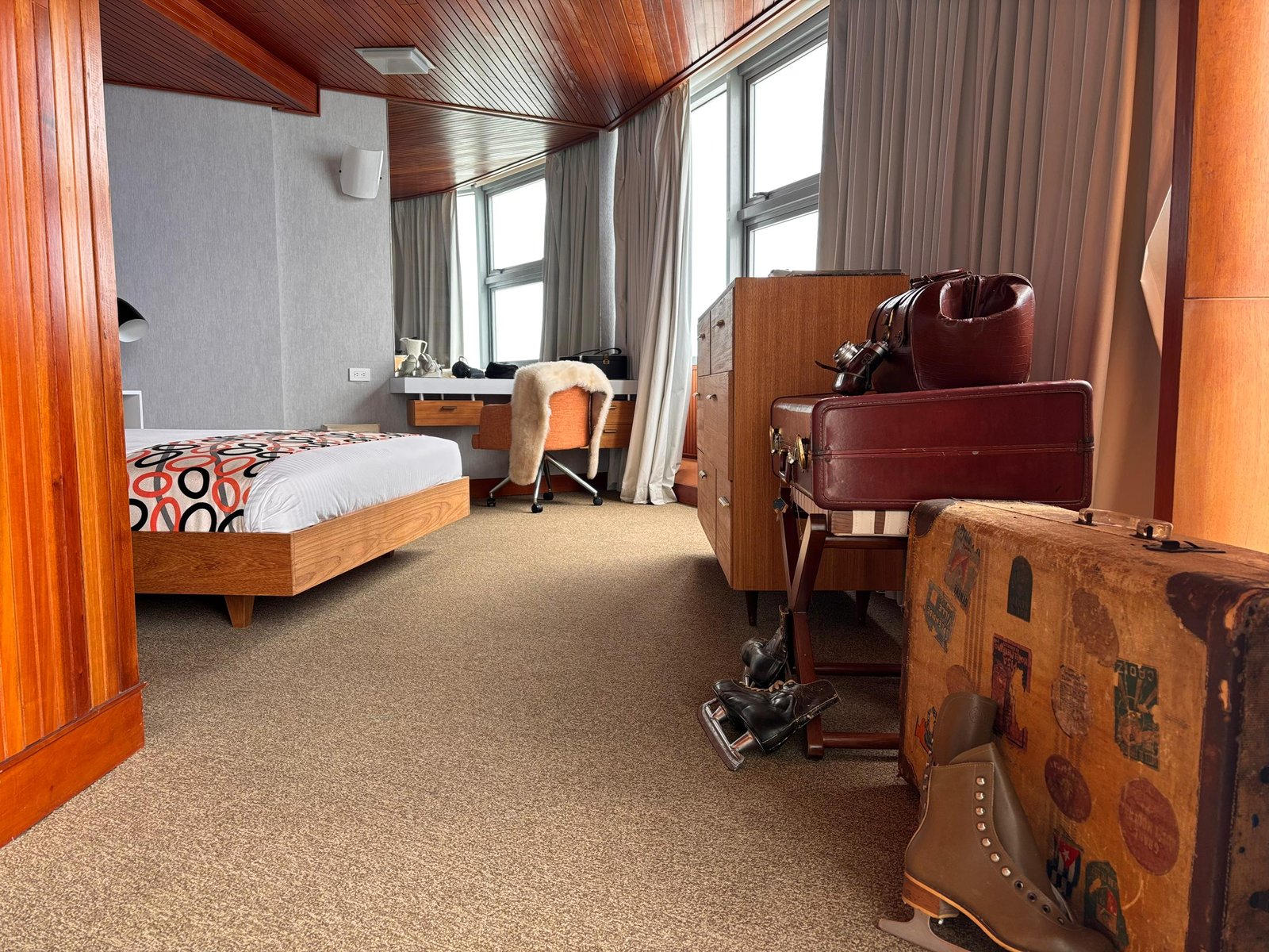Retrocede en el tiempo en nuestra Habitación Museo. Un viaje a los años 50 te espera en esta suite única, donde cada detalle te transportará a una época dorada. Muebles originales, acabados en madera y objetos personales rescatados te permitirán sumergirte en la historia del hotel. ¡Una experiencia inolvidable para los amantes de la historia y el diseño!